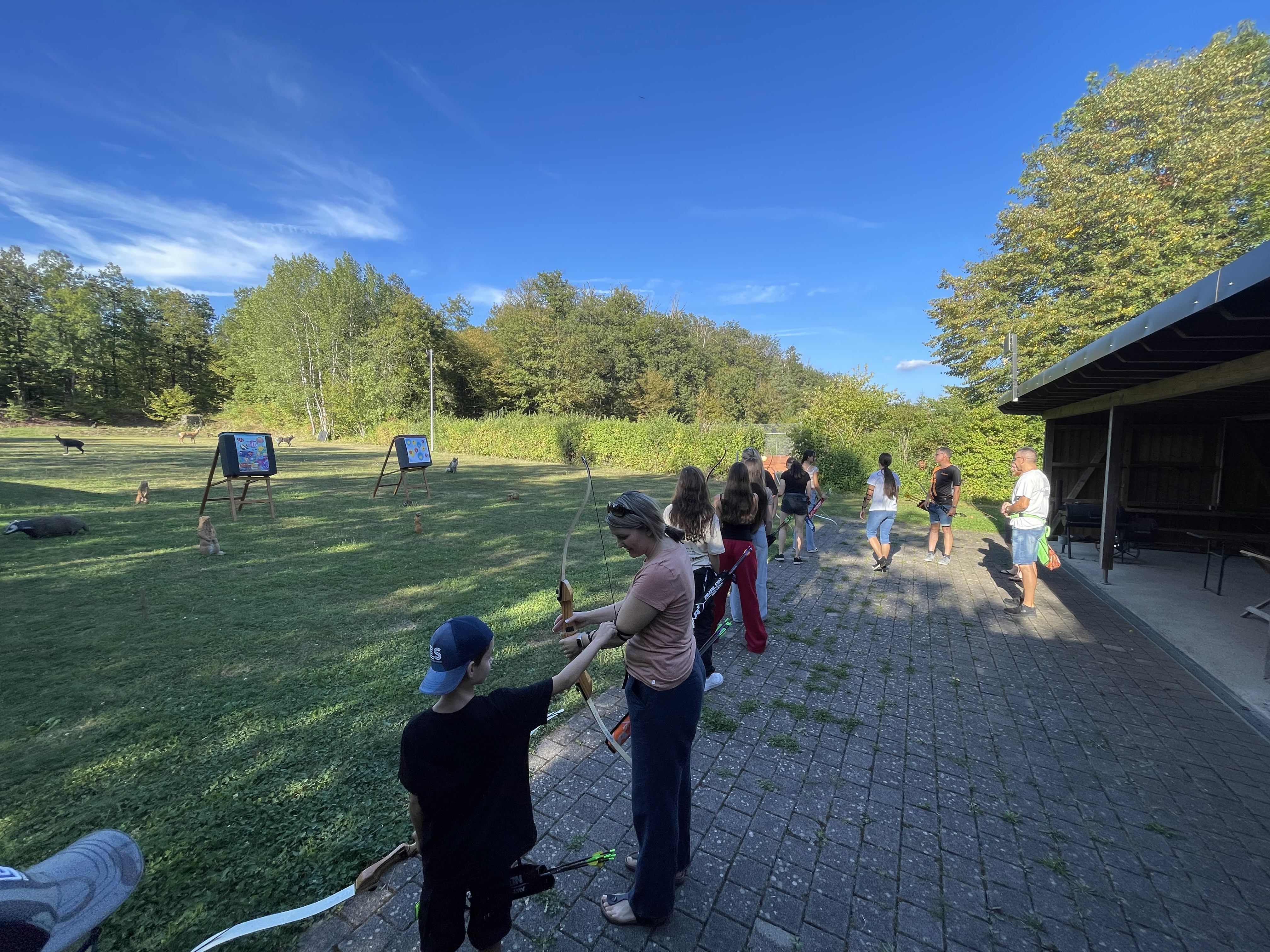 Besonders spannend für viele Gäste war, dass die aufgebauten Stationen des Kinderferienprogramms, darunter das Bogenschießen, Luftgewehrschießen und Blasrohrschießen, weiterhin genutzt werden konnten. Unsere engagierten Trainer nahmen sich viel Zeit, um den Geschwisterkindern – und sogar einigen interessierten Eltern – diese Disziplinen näherzubringen. Jeder, der wollte, durfte das Bogenschießen und Schießen mit dem Luftgewehr oder Blasrohr einmal selbst ausprobieren. Die Begeisterung war groß, und so manch ein Elternteil entdeckte dabei das eigene Talent.