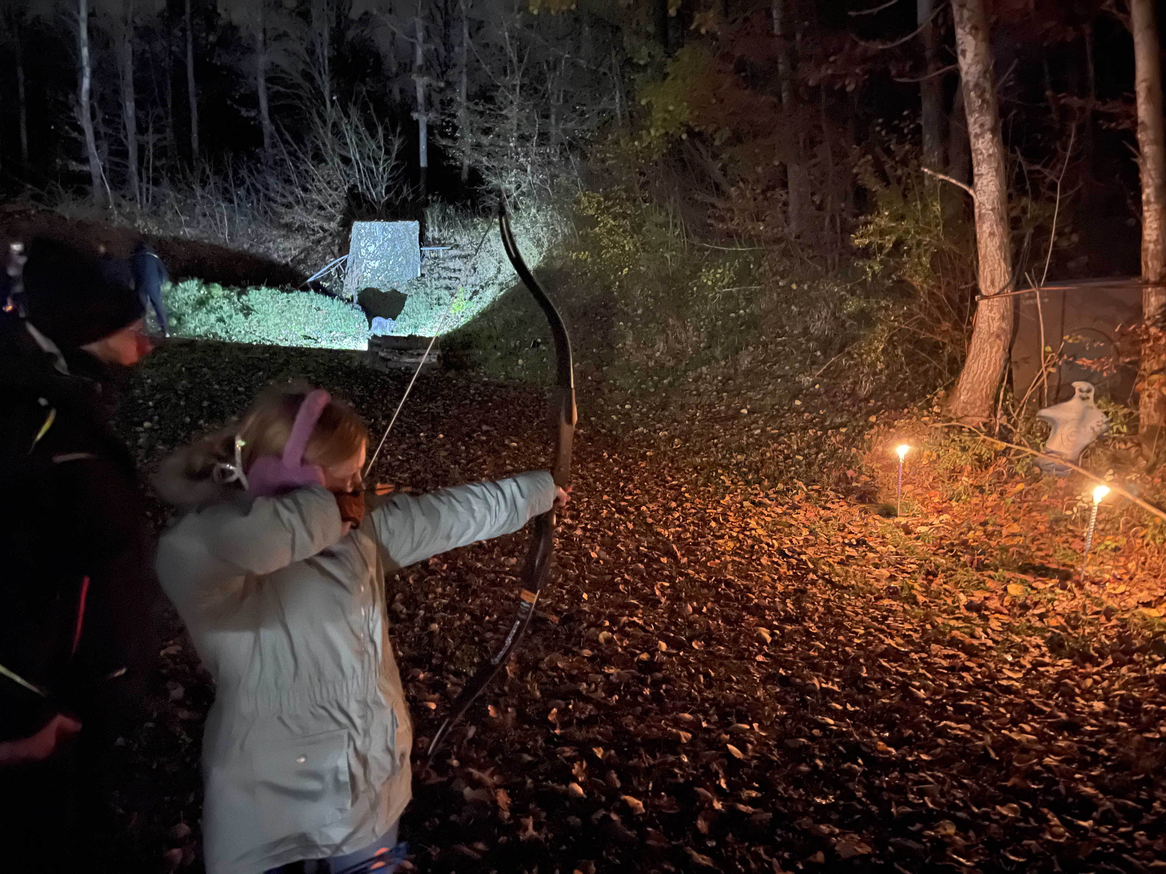 Pünktlich mit Einbruch der Nacht ging es für die Kinder und Jugendlichen los: In kleinen Gruppen zogen sie los, um sich im Parcours zu messen. Ziel war es, die Gespenster, Wölfe und anderen furchteinflößenden Tierattrappen treffsicher zu erwischen. Der schaurige Spaß und der Wettkampfgeist sorgten für eine mitreißende Atmosphäre.