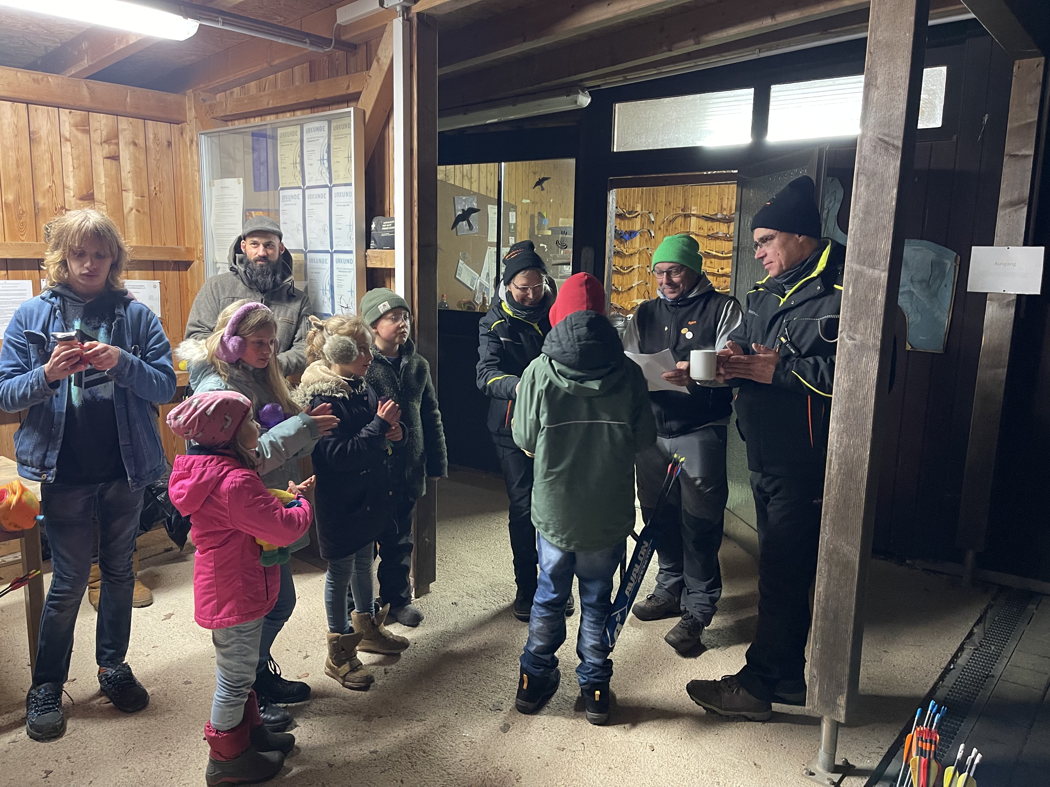Währenddessen genossen die Erwachsenen Bogenschützen bei Glühwein und Grillwurst die gesellige Zeit, bevor sie selbst an der Reihe waren, ihre Treffsicherheit unter Beweis zu stellen.