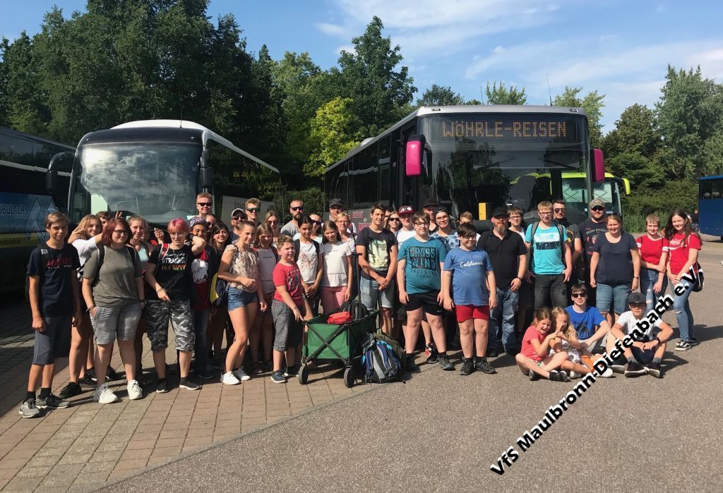 Am 06.07.2019 fuhren die Jugendlichen und Trainer gemeinsam mit der Jugend des VfS Knittlingen nach Tripsdrill. Der Bus sammelte um 8:20 Uhr die 9 Knittlinger am Busbahnhof der Schule ein. 10 Minuten später war Zustieg der Maulbronner am Sportzentrum. Insgesamt war der Bus mit 44 gut gelaunten Ausflüglern besetzt.