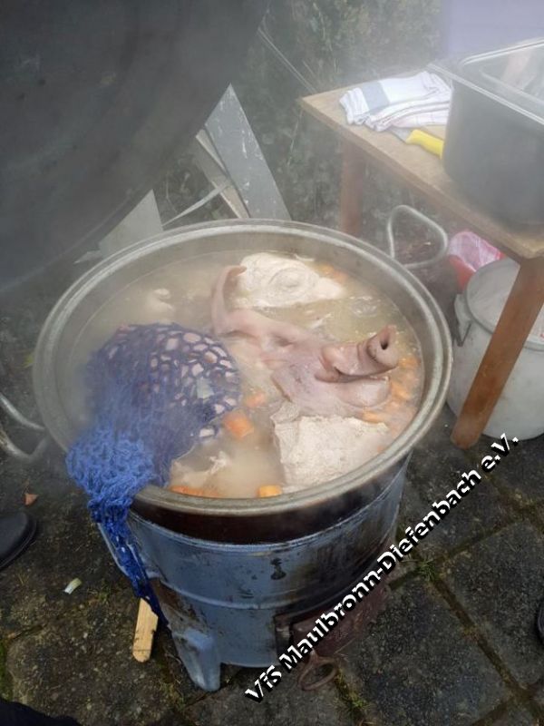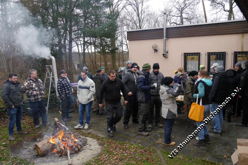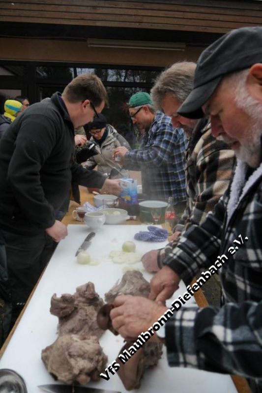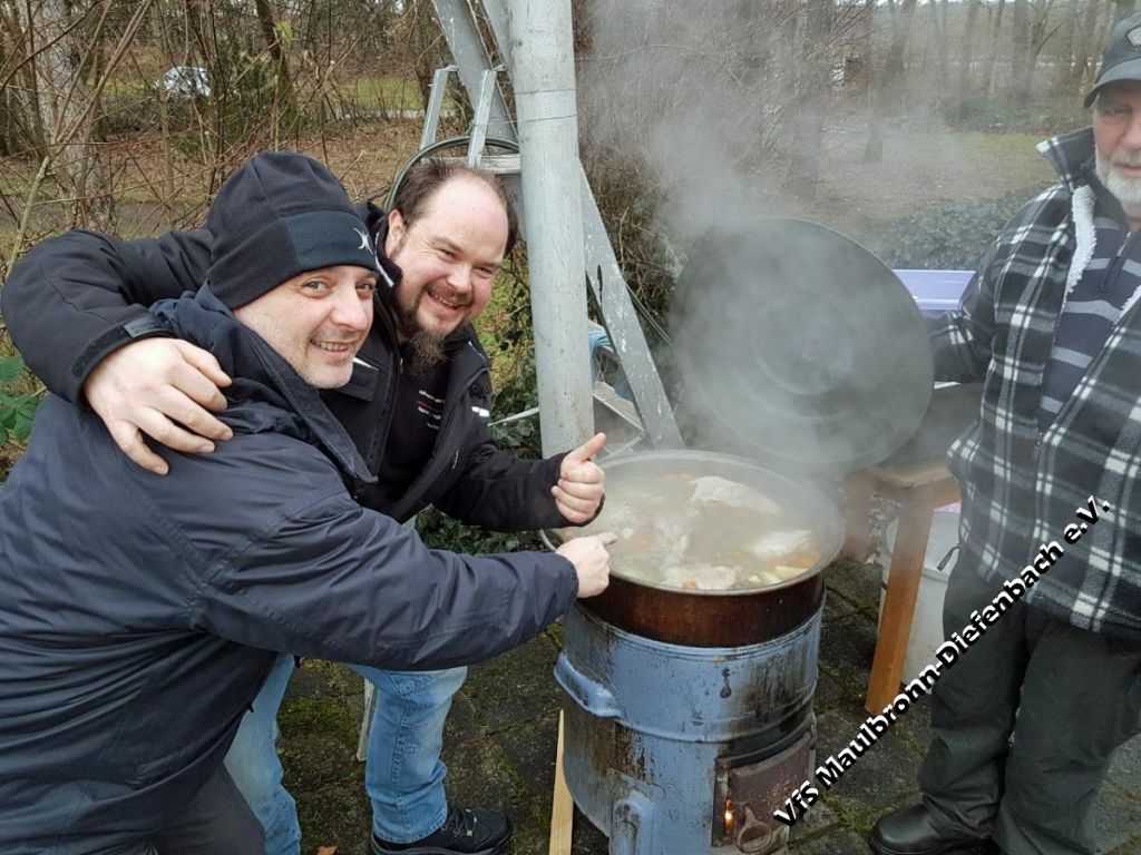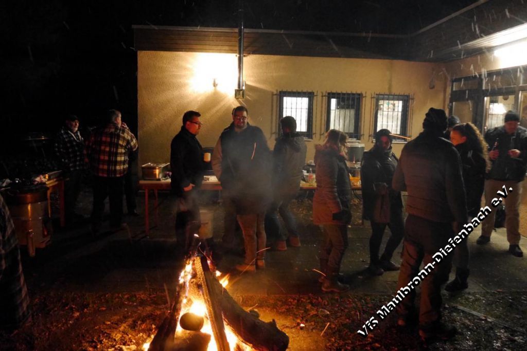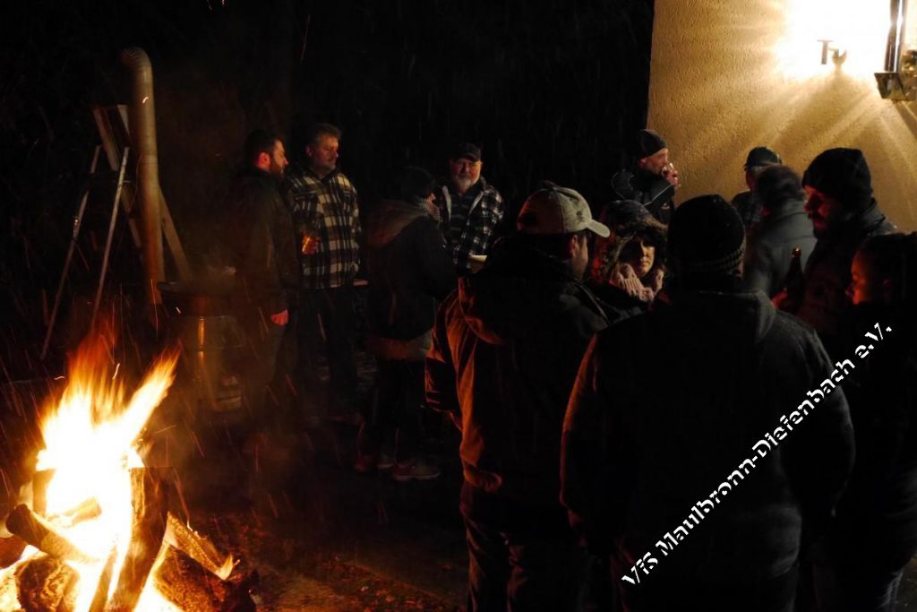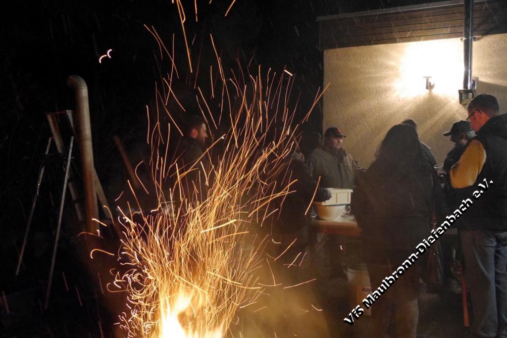 Am 29.12.2017 ließen die Schützen das Jahr mit ihrem traditionellen Kesselfleischessen ausklingen. Wie in jedem Jahr – wenn der Kessel dampft, dann ist der Platz vor dem Schützenhaus mit vielen hungrigen Schützen gefüllt. Zusammen mit dem selbst gemachten Glühwein schmeckte das Kesselfleisch umso besser. Die Stimmung war sehr ausgelassen und dank des gemütlichen Lagerfeuers, ging die Feier von den frühen Mittags- bis in die späten Abendstunden. Auch der starke Schneefall, der mit Einbruch der Dunkelheit einsetzte, konnte der Stimmung keinen Abbruch tun. Im Gegenteil: Es machte die Lagerfeuerstimmung ....