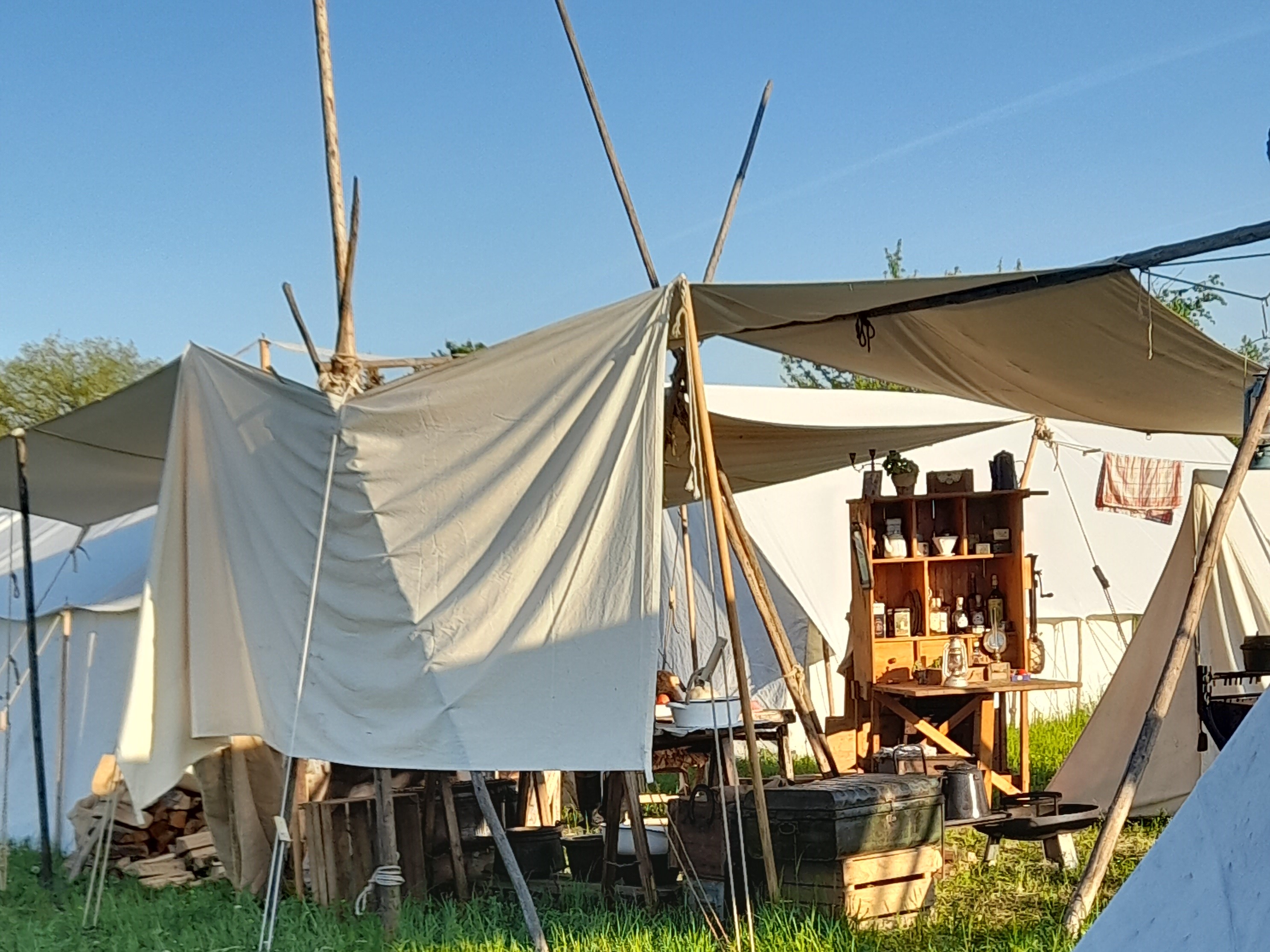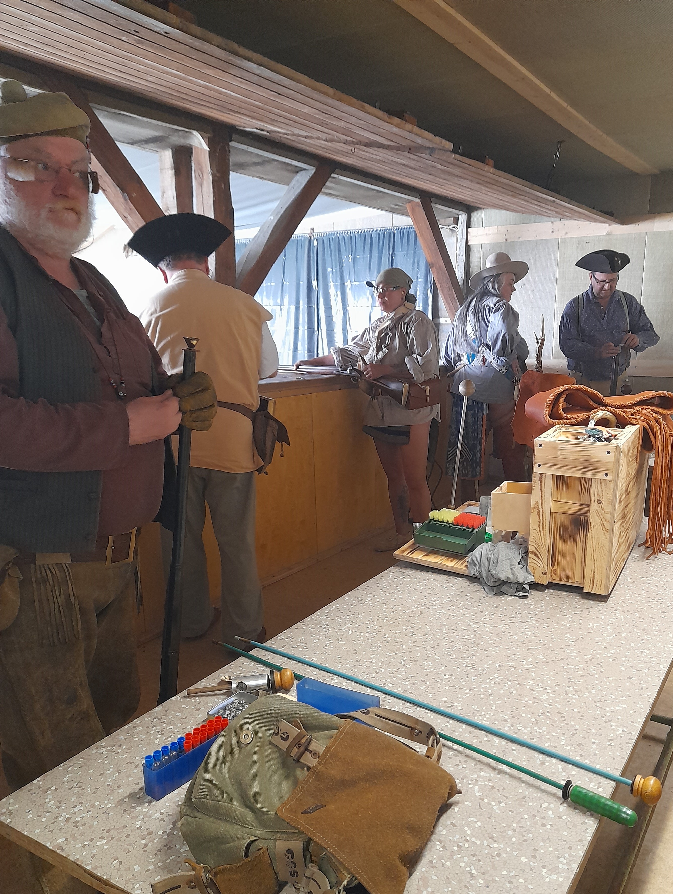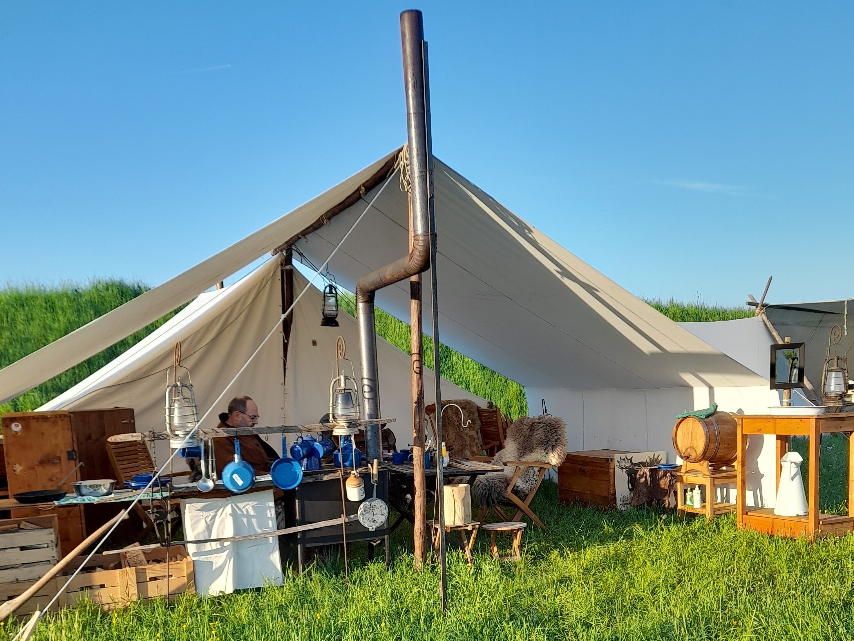 Da durften natürlich unsere Schwarzpulverfreunde Claus Lindner und Uwe Weindl nicht fehlen. Mit dem Aufbau des Zeltes wurde am Lagerleben teilgenommen.